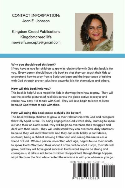 This unique book is to teach children to understand how to pray from a scripture base and learn the importance of talking with God through prayer. In this book you will find colorful photographs of real kids across the globe engaged in prayer along with a poster, affirmations and prayer calendar as tools for growth they will enjoy. Your kids will benefit utilizing this scriptural prayer guide because it is a great way to develop healthy prayer habits, resulting in your children drawing closer to God and recognizing that Holy Spirit is real. Being engaged in God's word daily, your kids will understand they can overcome issues and situations because they will know that with God they can walk boldly in confidence, unafraid, being a child of a loving Father, and seeing themselves as a friend of God. When a person, no matter what age, begins to use their mouth to speak God's Word and think about it often and do what it says, their life will grow, and they will have good success!