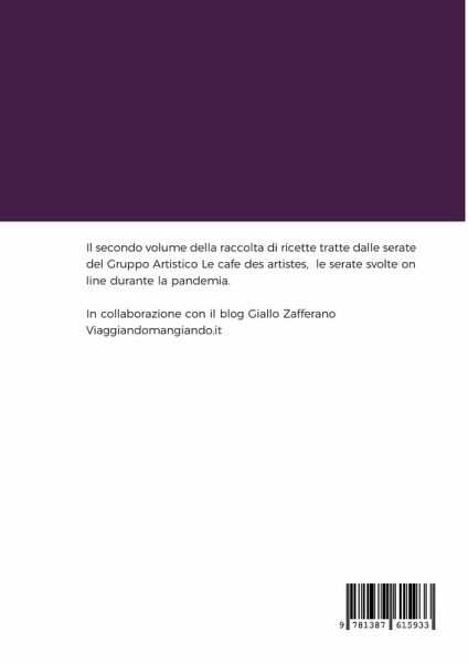 Il secondo volume della raccolta di ricette tratte dalle serate del Gruppo Artistico Le cafe des artistes, le serate svolte on line durante la pandemia. In collaborazione con il blog Giallo Zafferano Viaggiandomangiando.it