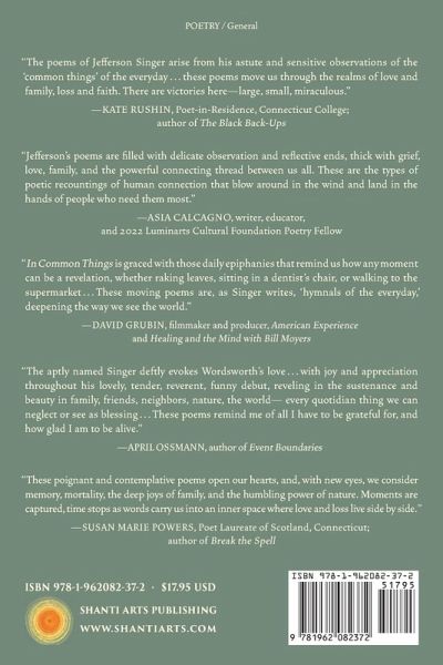 Jefferson Singer is the Faulk Foundation Professor of Psychology at Connecticut College in New London, Connecticut, and a clinical psychologist with a psychotherapy practice in West Hartford, Connecticut. He graduated from Amherst College with a double major in psychology and English, receiving both the Academy of American Poets Prize and a Thomas J. Watson Fellowship. After earning a Ph.D. in clinical psychology from Yale University and conducting a post-doctoral fellowship at the University of California San Francisco, he began his career in the psychology department at Connecticut College. After a long career of publishing articles and books in the fields of personality, psychotherapy, and autobiographical memory, he has increasingly devoted himself to writing poetry and has had poems appear in Sixfold, The Raven'sPerch, Orenaug Mountain Poetry Journal, the Medical Literary Messenger, and the anthology Winter Glimmerings. This is his first book of poetry. An avid hiker, he loves spending time on the trail with his wife, but also reading to his young grandchildren.