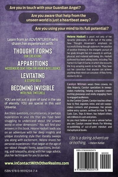 Are you in touch with your Guardian Angel? Are you aware that help from the unseen world is just a heartbeat away? >Learn from an ADVENTURER who shares her experiences with: * THOUGHT FORMS, our creation * APPARITIONS, messengers from our Higher Intelligence * LEVITATING a stupid idea * BECOMING INVISIBLE with Paul Twitchell YOU are not just a grain of sand in the sea of eternity. YOU are special in this vast Universe. Are there questions, circumstances, or perhaps experiences in your life that you have been struggling to understand about the unseen world or other dimensions? You will find your answers in this book. Helene Hadsell leads you on an adventure with her deep insights and unique storytelling style that literally sweeps you along with excitement. Helene shares her personal experiences-that began at the age of six-about thought forms, apparitions, levitating, and telepathy, along with her sage advice, plus her techniques for you to pursue. Helene Hadsell is proof, not only of her dynamic philosophy of life but of the entire New Thought Movement's emphasis on successful living through optimism. Her practice of positive thinking in the energetic pursuit of her goals brought her rich rewards in spiritual, physical, and material well-being. Mrs.Hadsell authored four best-selling books, including The Name It & Claim It Game, in which she recounts the truly amazing events in her life. They bear out her conviction that anyone can achieve anything their mind can conceive-if they firmly resolve to do so. Life is a daring adventure or nothing -Helen Keller