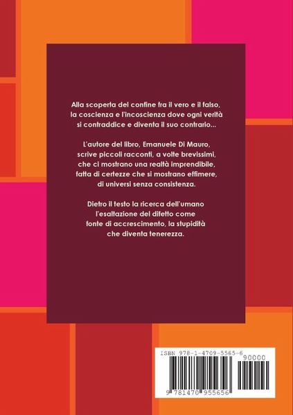 Un viaggio fatto di piccoli spezzoni di vita, racconti brevi a volte brevissimi che denunciano una realtà ambivalente, contraddittoria, in cui la certezza della verità diventa risibile. Alla scoperta dunque del confine fra il vero e il falso, la coscienza e l'incoscienza dove ogni verità si contraddice e diventa il suo contrario... l'autore del libro, Emanuele Di Mauro, scrive piccoli racconti, a volte brevissimi, che ci mostrano una realtà imprendibile, fatta di certezze che si mostrano effimere, di universi senza consistenza. Dietro il testo la ricerca dell'umano, l'esaltazione del difetto come fonte di accrescimento, la stupidità che diventa tenerezza.