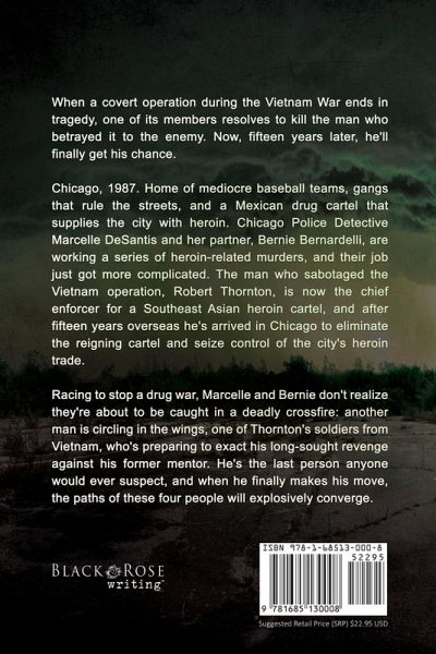 "A well-crafted gangland crime thriller with a fascinating military subplot and a deliciously mysterious villain." -BestThrillers.com When a covert operation during the Vietnam War ends in tragedy, one of its members resolves to kill the man who betrayed it to the enemy. Now, fifteen years later, he'll finally get his chance. Chicago, 1987. Home of mediocre baseball teams, gangs that rule the streets, and a Mexican drug cartel that supplies the city with heroin. Chicago Police Detective Marcelle DeSantis and her partner, Bernie Bernardelli, are working a series of heroin-related murders, and their job just got more complicated. The man who sabotaged the Vietnam operation, Robert Thornton, is now the chief enforcer for a Southeast Asian heroin cartel, and after fifteen years overseas he's arrived in Chicago to eliminate the reigning cartel and seize control of the city's heroin trade. Racing to stop a drug war, Marcelle and Bernie don't realize they're about to be caught in a deadly crossfire: another man is circling in the wings, one of Thornton's soldiers from Vietnam, who's preparing to exact his long-sought revenge against his former mentor. He's the last person anyone would ever suspect, and when he finally makes his move, the paths of these four people will explosively converge.