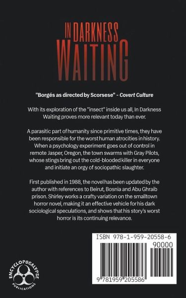 John Shirley's Sci-Fi Thriller is finally back in print! With its exploration of the "insect" inside us all, In Darkness Waiting proves more relevant today than ever. A parasitic part of humanity since primitive times, they have been responsible for the worst human atrocities in history. When a psychology experiment goes out of control in remote Jasper, Oregon, the town swarms with Gray Pilots, whose stings bring out the cold-blooded killer in everyone and initiate an orgy of sociopathic slaughter. First published in 1988, the novel has been updated with references to Beirut, Bosnia and Abu Ghraib prison. Shirley works a crafty variation on the smalltown horror novel, making it an effective vehicle for his dark sociological speculations, and shows that his story's worst horror is its continuing relevance.