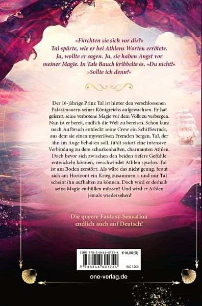 Prinz Tal ist hinter den verschlossenen Palastmauern seines Königreichs aufgewachsen. Er hat gelernt, seine verbotene Magie vor dem Volk zu verbergen. Nun ist er bereit, endlich die Welt zu bereisen. Doch schon kurz nach Aufbruch entdeckt seine Crew ein Schiffswrack, aus dem sie einen mysteriösen Fremden bergen. Tal, der ihn im Auge behalten soll, fühlt sofort eine intensive Verbindung zu dem schurkenhaften, charmanten Athlen. Bevor sich zwischen den beiden tiefere Gefühle entwickeln können, verschwindet Athlen jedoch spurlos, und Tal wird von Piraten verschleppt, die damit drohen, seine…mehr