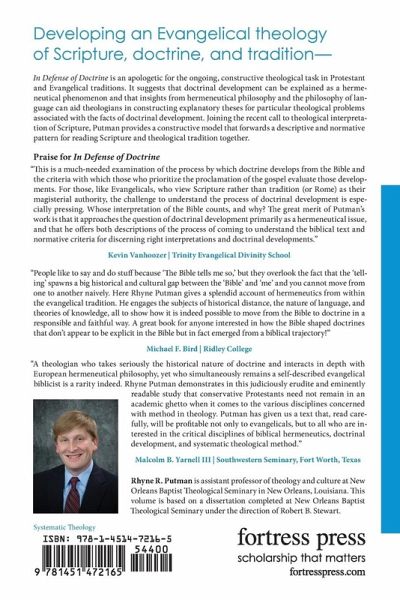 Questions surrounding the relationship of Scripture and doctrine are legion within the Protestant tradition. How can doctrine develop over time and maintain fidelity to the sacred text, especially for communities who cling to the Reformation principle of sola scriptura? Does not an appeal to contemporary, constructive theology belie commonly held Protestant and Evangelical convictions about the sufficiency of Scripture? Does admission and acceptance of doctrinal development result in a kind of reality-denying theological relativism? And in what way can a growing, postcanonical tradition maintain a sense of continuity with the faith of the New Testament?This study is an apologetic for the ongoing, constructive theological task in Protestant and Evangelical traditions. It suggests that doctrinal development can be explained as a hermeneutical phenomenon and that insights from hermeneutical philosophy and the philosophy of language can aid theologians in constructing explanatory theses for particular theological problems associated with the facts of doctrinal development, namely, questions related to textual authority, reality depiction, and theological identity. Joining the recent call to theological interpretation of Scripture, Putman provides a constructive model that forwards a descriptive and normative pattern for reading Scripture and theological tradition together.