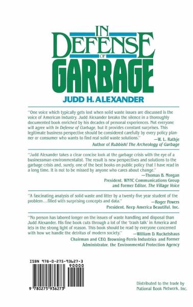 This other side of the story is the first to show how waste products contribute positively to the economy, and to place garbage in perspective when considering the total use of America's resources. Alexander comes to this subject with 40 years of experience in making and recycling disposable products and in studying litter and municipal waste issues. He sees the garbage crisis as a political, not a physical, problem and introduces a non-cash national solution. He deals with popular misconceptions about the quantity and growth of garbage, resource consumption, forest productivity, packaging, disposal taxes, landfills, incineration and recycling. Written for open-minded lay readers, policymakers, professionals, and serious-minded students, this is an important contribution to the study of our current environmental situation. Alexander proposes that the problem does not necessarily lie with the quantity of our resources, population growth, affluence, or with space or pollution, but rather with politics, fear, and misinformation. Alexander offers a survey of the history of garbage, considers the quantity and contents of the waste, and provides us with ways to save our nonrenewable resources. Especially compelling is the discussion of the characteristics and products of our throwaway society. Also covered is the role of packaging, measures for source reduction, the promise and problems of recycling different types of material, biodegradation, compost and litter, and the collection and disposal of municipal solid waste. In Defense of Garbage is about the politics of garbage. Reading this eye-opening book is a sure way to become part of the solution to one of the most hotly-debated problems in the world today.