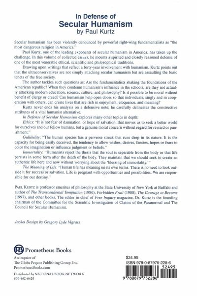 Are the fundamentalists shaking the foundations of the American republic?- When they condemn humanism's influence in the schools, are they not actuallyattacking modern education, science, culture, and philosophy?- Is it possible to be moral without benefit of clergy or creed?- Can humanism help open doors so that individuals, singly and in cooperationwith others, can create lives that are rich in enjoyment, eloquent andmeaningful?What is humanism, and why have humanists come under attack by religious conservatives and the fundamentalist right? "Humanism is not a dogma or a creed," writes Paul Kurtz. "Humanists have confidence in human beings, and they believe that the only bases for morality are human experience and human needs. Humanists are opposed to all forms of supernaturalistic and authoritarian religion. Many humanists believe that scientific intelligence and critical reason can assist in reconstructing our moral lives . . . Humanists believe in freedom and pluralistic democracy as virtually our first principle, and we are disturbed by any authoritarian effort to impose one point of view on America. Defense of the open, democratic society should be the first point humanists make in response to the Moral Majority, making it clear that in our reading of the American tradition, pluralism is essential."In Defense of Secular Humanism is a volume of collected essays by one of the leading exponents of secular humanism. It is a closely reasoned defense of one of the most venerable ethical, scientific and philosophical traditions within Western civilization.