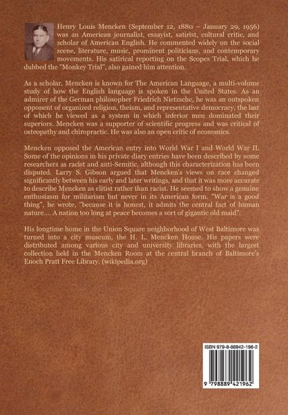 In Defense of Women is H. L. Mencken's 1918 book on women and the relationship between the sexes. Some laud the book as progressive while others brand it as reactionary. While Mencken did not champion women's rights, he described women as wiser in many novel and observable ways, while demeaning average men. According to Mencken's biographer, Fred Hobson: "Depending on the position of the reader, he was either a great defender of women's rights or, as a critic labelled him in 1916, 'the greatest misogynist since Schopenhauer', 'the country's high-priest of woman-haters.'" The original title for Defense was A Book for Men Only, but other working titles included The Eternal Feminine as well as The Infernal Feminine. The book was originally published by Philip Goodman in 1918, but Mencken released a new edition in 1922 in an attempt to bring the book to a wider audience. This second edition, published by Alfred Knopf, was both much longer and milder. In general, biographers describe Defense as "ironic" it was not so much a defense of women as a critique of the relationship between the sexes. Topics covered by the book included "Woman's Equipment," "Compulsory Marriage," "The Emancipated Housewife," and "Women as Martyrs." Women were gaining rights, according to Mencken-the ability to partake in adultery without lasting public disgrace, the ability to divorce men, and even some escape from the notion of virginity as sacred, which remained as "one of the hollow conventions of Christianity." Women nonetheless remained restrained by social conventions in many capacities. Mencken's love of women was driven in part by the sympathy he had for female literary characters (especially those brought to life by his friend Theodore Dreiser), as well as his almost fanatical love of his mother. Mencken supported women's rights, even if he had no affection for the suffragist. Although he originally intended to be ironic when he proclaimed that women were the superior gender, many of the qualities he assigned to them were qualities he deeply admired - realism and skepticism among them, but also manipulative skill and a detached view of humankind. The book was reviewed very well: according to Carl Bode, there were four times as many favorable reviews as unfavorable. The first edition of the book sold fewer than 900 copies, a disappointing showing. The second edition sold much better, during the more progressive Roaring Twenties. (wikipedia.org)