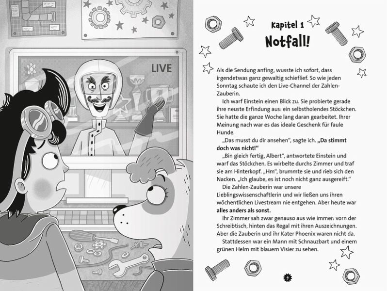 Hilfe! Der Superschurke Dr. Chaos hat die berühmteste Wissenschafts-Bloggerin des Landes vor laufender Kamera entführt! Der begeisterte Hobbywissenschaftler Albert und seine clevere Hündin Einstein müssen sie unbedingt befreien. Doch dafür brauchen sie DEINE Unterstützung. Denn Dr. Chaos denkt gar nicht daran, es euch einfach zu machen ... Ein lustiges Rätselabenteuer mit über 40 Knobelaufgaben für alle Naturwissenschafts-Fans.