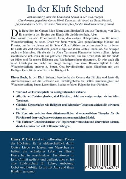 Warum sich mit der Genese der Fürbitte und der Relevanz von Fürbittegebeten für Gottes Barmherzigkeit und Wiederherstellung heute befassen. Sie werden erfahren, warum Gott Fürbitten für sündige Menschen initiiert hat. Alle, die an Christus glauben, sind Fürbitter, nicht nur einige wenige, wie im Alten Testament. Göttliche Eigenschaften wie Heiligkeit und liebevoller Gehorsam stärken die wirksame Fürbitte. Die Kontraste zwischen dem alttestamentlichen alttestamentlichen Tieropfer für die Fürbitte und dem von Jesus vertretenen neutestamentlichen Modell. Wie Fürbitter Gebetshindernisse wie Ungehorsam vermeiden und überwinden können, die die Gemeinschaft mit Gott beeinträchtigen. Freudige Erweckung ist der Hauptnutzen der Fürbitte.
