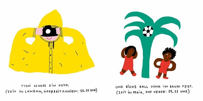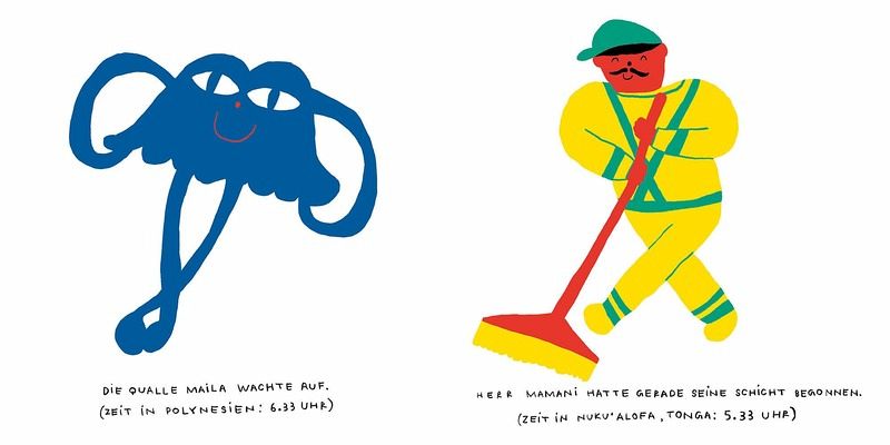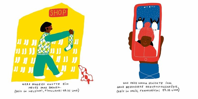 Ein lustiges Bilderbuch, in dem Kinder erfahren, dass es im selben Augenblick überall auf der Welt eine ganz andere Zeit ist