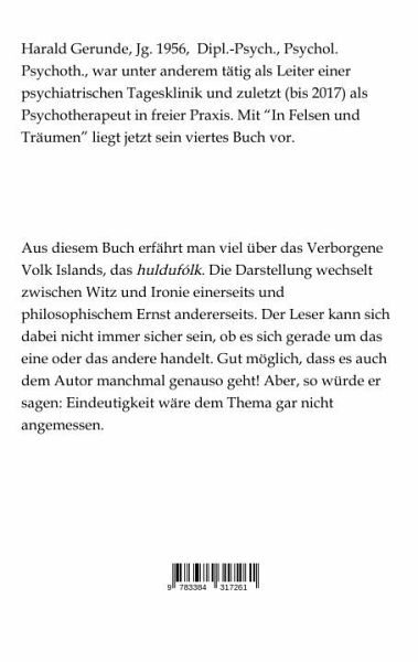 Jahrgang 1956 Dipl. - Psych., Psychol. Psychotherapeut verschiedene Tätigkeiten im psychosozialen Feld, u. a. als Leiter einer psychiatrischen Tagesklinik, zuletzt als Psychotherapeut in privater Praxis "In Felsen und Träumen" ist das vierte Buch des Autors