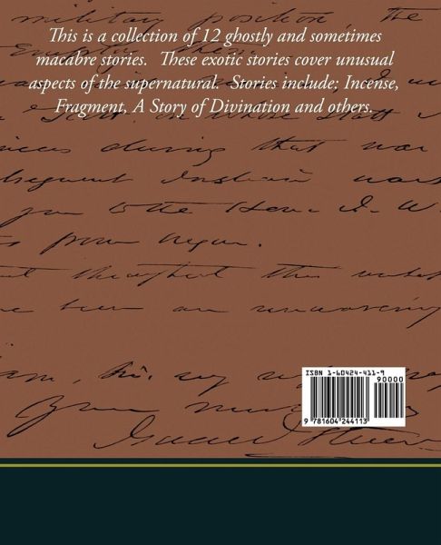 This is a collection of 12 ghostly and sometimes macabre stories. These exotic stories cover unusual aspects of the supernatural. Stories include: Incense, Fragment, A Story of Divination and others.