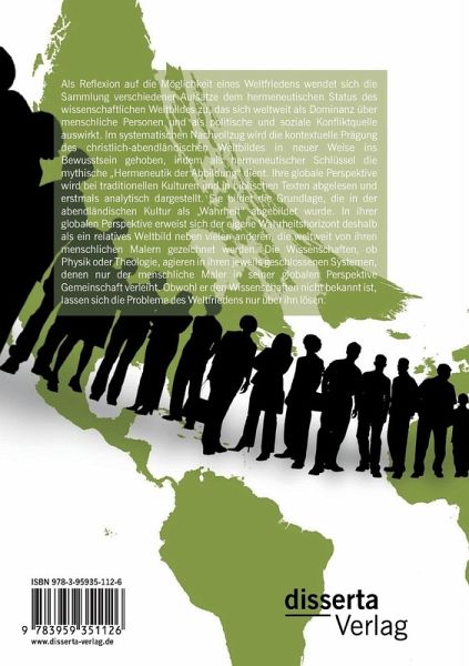 Als Reflexion auf die Möglichkeit eines Weltfriedens wendet sich die Sammlung verschiedener Aufsätze dem hermeneutischen Status des wissenschaftlichen Weltbildes zu, das sich weltweit als Dominanz über menschliche Personen und als politische und soziale Konfliktquelle auswirkt. Im systematischen Nachvollzug wird die kontextuelle Prägung des christlich-abendländischen Weltbildes in neuer Weise ins Bewusstsein gehoben, indem als hermeneutischer Schlüssel die mythische "Hermeneutik der Abbildung" dient. Ihre globale Perspektive wird bei traditionellen Kulturen und in biblischen Texten abgelesen und erstmals analytisch dargestellt. Sie bildet die Grundlage, die in der abendländischen Kultur als "Wahrheit" abgebildet wurde. In ihrer globalen Perspektive erweist sich der eigene Wahrheitshorizont deshalb als ein relatives Weltbild neben vielen anderen, die weltweit von ihren menschlichen Malern gezeichnet werden. Die Wissenschaften, ob Physik oder Theologie, agieren in ihren jeweils geschlossenen Systemen, denen nur der menschliche Maler in seiner globalen Perspektive Gemeinschaft verleiht. Obwohl er den Wissenschaften nicht bekannt ist, lassen sich die Probleme des Weltfriedens nur über ihn lösen.