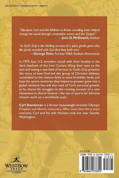 "Olympian Carl and the Athletes in Action wrestling team helped change the world through competitive events and the Gospel!" -Josh D. McDowell, Author "In God's Grip is the thrilling account of a quiet, gentle giant who, like Jacob, wrestled with God. And they both won." -George Toles, Former NBA Stadium Announcer. "In God's Grip shares the true story of Christian wrestlers bringing the Good News into countries behind the Iron Curtain." -Tony Dungy, Super Bowl-winning NFL head coach In 1979, four U.S. wrestlers stood with their families in the dark shadows of the Iron Curtain, lifting their eyes to the east and seeing a vast field of harvest. In God's Grip presents the story of how God led this group of Christian athletes, committed to the mission fields in once-forbidden lands, and how the sports ministries they helped to pioneer grew into a global network. You will also read of Carl's personal growth, as he shares his struggles in this riveting account of a new movement in church history-the use of sports for full-time mission work on a worldwide scale.