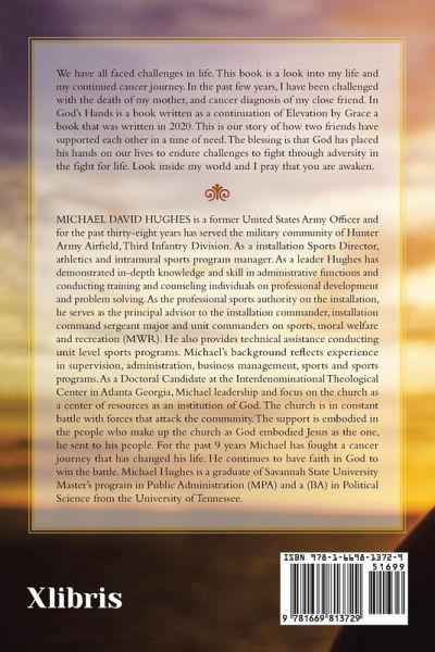 We have all faced challenges in life. This book is a look into my life and my continued cancer journey. In the past few years, I have been challenged with the death of my mother, and cancer diagnosis of my close friend. In God's Hands is a book written as a continuation of Elevation by Grace a book that was written in 2020. This is our story of how two friends have supported each other in a time of need. The blessing is that God has placed his hands on our lives to endure challenges to fight through adversity in the fight for life. Look inside my world and I pray that you are awaken.