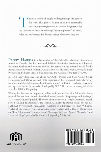 These are stories of people waling through life here on this small blue planet. As they encounter remarkable and sometimes tragic events we see how the great Gopd of the Universe reaches down through the atmosphere of sin, meets, helps and encourages frail human beings where every they are.
