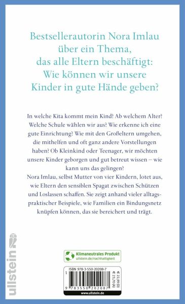 "Wie viel Eltern braucht ein Kind? Wie können wir Fürsorgepflicht und Freiheitsdrang vereinen? Und vor allem: Wie kann es uns gelingen, ein gutes, stabiles Bindungsnetz für unsere Kinder zu knüpfen?" Nora Imlau