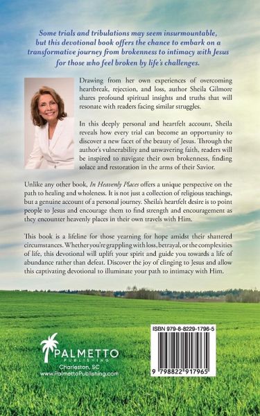 Some trials and tribulations may seem insurmountable, but this devotional book offers the chance to embark on a transformative journey from brokenness to intimacy with Jesus for those who feel broken by life's challenges. Delve into the profound and intimate journey of Sheila Gilmore in her captivating book, In Heavenly Places: A 30-Day Journey From Brokenness To Intimacy With Jesus. With heartfelt sincerity, Sheila draws upon her own encounters with heartbreak, rejection, and loss to offer readers facing similar struggles a beacon of spiritual insights and truths. Through the pages of this deeply personal account, Sheila uncovers the transformative power of trials, revealing how they can become stepping stones to uncovering new dimensions of Jesus' beauty. Her vulnerability and unwavering faith inspire readers to navigate their own brokenness, finding solace and restoration within the embrace of their Savior. In Heavenly Places transcends mere religious teachings. It serves as a genuine testament to Sheila's personal journey, providing a unique perspective on the path to healing and wholeness. With an earnest desire to lead others to Jesus, she encourages readers to discover strength and hope in encountering heavenly places during their own walks with Him. A lifeline for those yearning for hope amidst shattered circumstances, In Heavenly Places offers solace to those grappling with loss, betrayal, or the complexities of life. Embrace the uplifting spirit within its pages, allowing it to guide you towards a life of abundance rather than defeat. Revel in the joy of clinging to Jesus and allow this captivating devotional to illuminate your path towards profound intimacy with Him.
