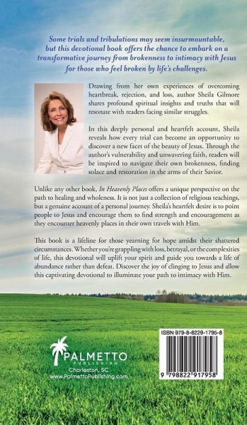 Some trials and tribulations may seem insurmountable, but this devotional book offers the chance to embark on a transformative journey from brokenness to intimacy with Jesus for those who feel broken by life's challenges. Delve into the profound and intimate journey of Sheila Gilmore in her captivating book, In Heavenly Places: A 30-Day Journey From Brokenness To Intimacy With Jesus. With heartfelt sincerity, Sheila draws upon her own encounters with heartbreak, rejection, and loss to offer readers facing similar struggles a beacon of spiritual insights and truths. Through the pages of this deeply personal account, Sheila uncovers the transformative power of trials, revealing how they can become stepping stones to uncovering new dimensions of Jesus' beauty. Her vulnerability and unwavering faith inspire readers to navigate their own brokenness, finding solace and restoration within the embrace of their Savior. In Heavenly Places transcends mere religious teachings. It serves as a genuine testament to Sheila's personal journey, providing a unique perspective on the path to healing and wholeness. With an earnest desire to lead others to Jesus, she encourages readers to discover strength and hope in encountering heavenly places during their own walks with Him. A lifeline for those yearning for hope amidst shattered circumstances, In Heavenly Places offers solace to those grappling with loss, betrayal, or the complexities of life. Embrace the uplifting spirit within its pages, allowing it to guide you towards a life of abundance rather than defeat. Revel in the joy of clinging to Jesus and allow this captivating devotional to illuminate your path towards profound intimacy with Him.