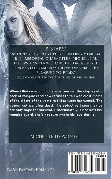 NYT & USAT BESTSELLING AUTHOR When Olivia was a child, she witnessed the slaying of a pack of vampires and now refuses to tell who did it. Some of the elders of the vampire tribes want her turned. The others just want her dead. The seductive Jaxon may be her only hope for survival. Unfortunately, since he’s her vampire guard, she’s not sure where his loyalties lie. A Tribes of the Vampire Book Four Length: Novella Urban Fantasy Dark Paranormal Vampire Romance