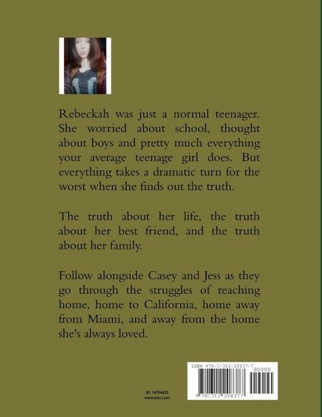 Rebeckah was just a normal teenager. She worried about school, thought about boys and pretty much everything your average teenage girl does. But everything takes a dramatic turn for the worst when she finds out the truth. The truth about her life, the truth about her best friend, and the truth about her family. Follow alongside Casey and Jess as they go through the struggles of reaching home, home to California, home away from Miami, and away from the home she's always loved.