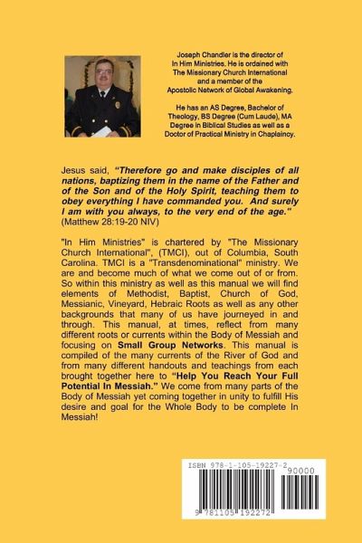 "In Him Ministries" is chartered by "The Missionary Church International", (TMCI), out of Columbia, South Carolina. TMCI is a "Transdenominational" ministry. We are and become much of what we come out of or from. So within this ministry as well as this manual we will find elements of Methodist, Baptist, Church of God, Messianic, Vineyard, Hebraic Roots as well as any other backgrounds that many of us have journeyed in and through. This manual, at times, reflect from many different roots or currents within the Body of Messiah and focusing on Small Group Networks. This manual is compiled of the many currents of the River of God and from many different handouts and teachings from each brought together here to "Help You Reach Your Full Potential In Messiah." We come from many parts of the Body of Messiah yet coming together in unity to fulfill His desire and goal for the Whole Body to be complete In Messiah!
