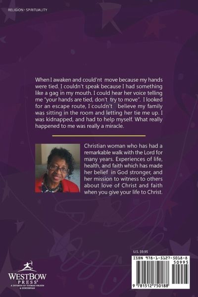 When I awaken and could’nt move because my hands were tied. I couldn’t speak because I had something like a gag in my mouth. I could hear her voice telling me "your hands are tied, don’t try to move". I looked for an escape route, I couldn’t believe my family was sitting in the room and letting her tie me up. I was kidnapped, and had to help myself. What really happened to me was really a miracle.