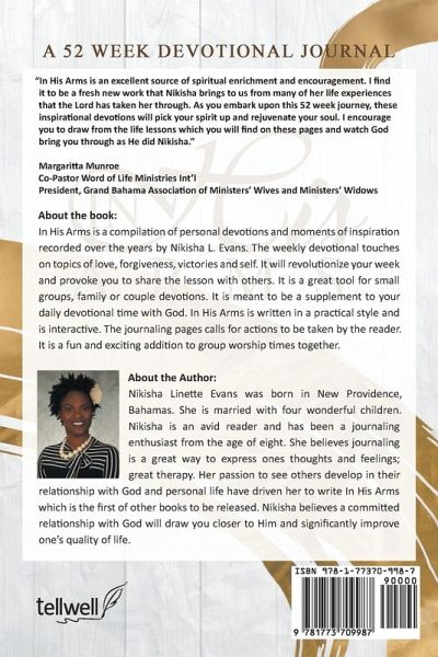 In His Arms is a compilation of personal devotions and moments of inspiration recorded over the years by Nikisha L. Evans. The weekly devotional touches on topics of love, forgiveness, victories and self. It will revolutionize your week and provoke you to share the lesson with others.