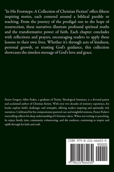 "In His Footsteps: A Collection of Christian Fiction" offers fifteen inspiring stories, each centered around a biblical parable or teaching. From the journey of the prodigal son to the hope of resurrection, these narratives illustrate profound spiritual truths and the transformative power of faith. Each chapter concludes with reflections and prayers, encouraging readers to apply these lessons to their own lives. Whether it's through acts of kindness, personal growth, or trusting God's guidance, this collection showcases the timeless message of God's love and grace.