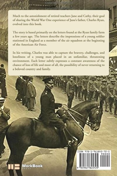 Much to the astonishment of retired teachers Jane and Cathy, their goal of sharing the World War One experience of Jane's father, Charles Ryan, evolved into this book. The story is based primarily on the letters found at the Ryan family farm a few years ago. The letters describe the impressions of a young soldier stationed in England as a member of the air squadron at the beginning of the American Air Force. In his writing, Charles was able to capture the bravery, challenges, and loneliness of a young man placed in an unfamiliar, threatening environment. Each letter subtly expresses a constant awareness of the chance of loss of life and most of all, the possibility of never returning to a beloved country and family.