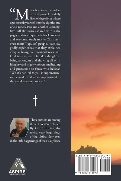"Miracles, signs, wonders are still parts of the daily lives of these folks whose ages are enjoyed well into the eighties and one is ninety-two and another is ninety-five. All the stories shared within the pages of this unique little book are true and awesome. Surely mostly Christians, even many "regular" people, have had godly experiences that they explained away as being mere coincidences. But God is alive, and He takes delight in being among us and showing all of us his glory and mighty powers and healing and protection to those who believe. "What's natural to you is supernatural to the world; and what's supernatural to the world is natural to you." These authors are among those who were "blessed By God" during the revival years beginnings of the 1960s. Now even in the little happenings of their daily lives.