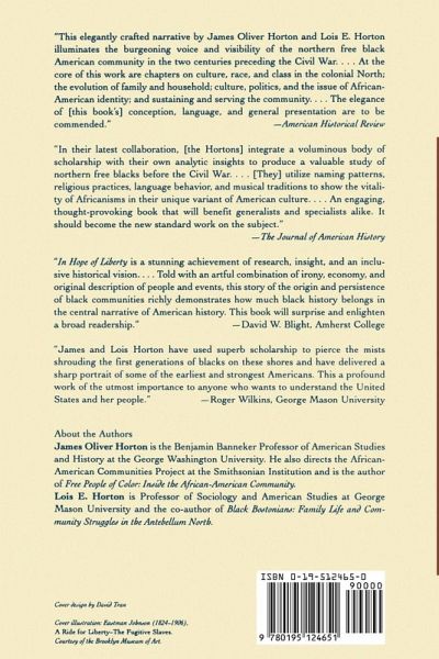 Covering the colonial period to the Civil War, spanning all of the northern United States, In Hope of Liberty documents the antebellum northern black experience. In examining churches, schools, music, living arrangements, occupations, even the underground railroad, the Hortons point out the central role of the black community in successfully managing the tensions born of assimilation and cultural difference. In the process, they detail the extensive national contributions of northern blacks.