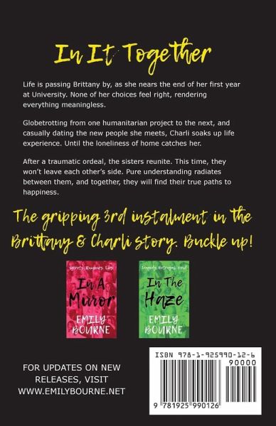 Life is passing Brittany by, as she nears the end of her first year at University. None of her choices feel right, rendering everything meaningless. Globetrotting from one humanitarian project to the next, and casually dating the new people she meets, Charli soaks up life experience. Until the loneliness of home catches her. After a traumatic ordeal, the sisters reunite. This time, they won't leave each other's side. Pure understanding radiates between them, and together, they will find their true paths to happiness. In It Together deals with depression, mental health issues, and depicts suicidal scenes. Reader discretion is advised if this subject matter is personally concerning.