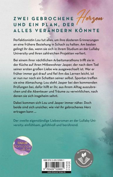 Perfektionistin Lou tut alles, um ihre düsteren Erinnerungen an eine frühere Beziehung in Schach zu halten. Am besten gelingt ihr das, wenn sie beschäftigt ist und zum Beispiel bis spät in die Nacht für ihr Umweltmanagement-Studium an der LBU arbeitet. Bei einem ihrer nächtlichen Arbeits-Marathons trifft sie in der Küche des Wohnheims auf Jasper, der nach dem Tod seiner ersten großen Liebe wie ausgewechselt ist. War er früher immer gut drauf, ist er nun nur noch ein Schatten seiner selbst.
