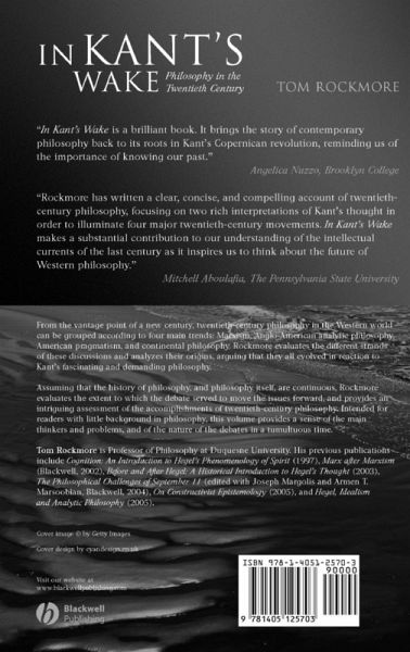 "Rockmore has written a clear, concise, and compellingaccount of twentieth-century philosophy, focusing on two richinterpretations of Kant's thought in order to illuminate fourmajor twentieth-century movements. In Kant's Wakemakes a substantial contribution to our understanding of theintellectual currents of the last century as it inspires us tothink about the future of Western philosophy." MitchellAboulafia, Pennsylvania State University