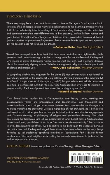 In this book, Chris Boesel argues that Derrida’s misreading of Fear and Trembling is the source of a blind spot in deconstructive engagements with "confessional faith," erasing the Kierkegaardian possibility of a "deconstructive deconstructibility" that disrupts human mastery over God and neighbor and calls for concrete commitments to justice.