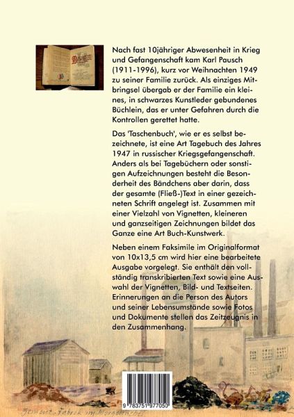 Nach fast 10jähriger Abwesenheit in Krieg und Gefangenschaft kehrte Karl Pausch (1911-1996) kurz vor Weihnachten 1949 zu seiner Familie zurück. Als einziges Mitbringsel übergab er der Familie ein kleines, in schwarzes Kunstleder gebundenes Büchlein, das er unter Gefahren durch die Kontrollen gerettet hatte.Das 'Taschenbuch', wie er es selbst bezeichnete, ist eine Art Tagebuch des Jahres 1947 in russischer Kriegsgefangenschaft. Darstellt werden in Bild und Text Alltagssituationen des Lagerlebens und der Zwangsarbeit. Aber auch Reflexionen über die Hintergründe und Lebensumstände des Krieges sowie die stets präsenten Gedanken an die zurückgebliebene Familie und die Situation in der Heimat sind Gegenstand der Darstellung. Gedanken, die wohl auch die heutigen Flüchtlinge aus den Kriegs- und Krisenregionen bewegen.Anders als bei Briefen, Tagebüchern oder sonstigen Aufzeichnungen besteht die Besonderheit des Bändchens aber darin, dass der gesamte (Fließ-)Text in einer gezeichneten Schrift angelegt ist. In Einheit mit einer Vielzahl von Vignetten, kleineren und ganzseitigen Zeichnungen bildet das Ganze eine Art Buch-Kunstwerk.Der Herausgeber versucht, die Zeit, von der das 'Taschenbuch' handelt, in den Rahmen eines gelebten Lebens zu stellen: Neben Erinnerungsstücken aus dem Nachlass des Autors schien es sinnvoll, Erläuterungen und eigene Erinnerungen an die Person und die damaligen Lebensumstände beizutragen.