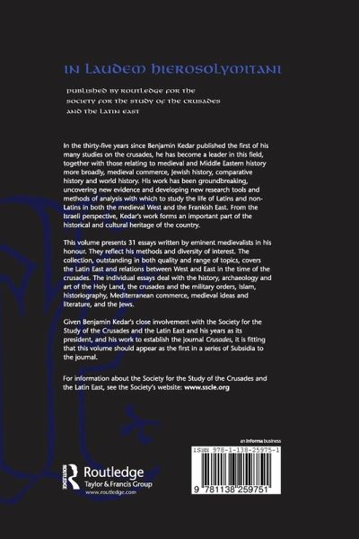 In the thirty-five years since B.Z. Kedar published the first of his many studies on the crusades, he has become a leading historian of this field, and of medieval and Middle Eastern history more broadly. His work has been groundbreaking, uncovering new evidence and developing new research tools and methods of analysis with which to study the life of Latins and non-Latins in both the medieval West and the Frankish East. From the Israeli perspective, Kedar's work forms a important part of the historical and cultural heritage of the country. This volume presents 31 essays written by eminent medievalists in his honour. They reflect his methods and diversity of interest. The collection, outstanding in both quality and range of topics, covers the Latin East and relations between West and East in the time of the crusades. The individual essays deal with the history, archaeology and art of the Holy Land, the crusades and the military orders, Islam, historiography, Mediterranean commerce, medieval ideas and literature, and the Jews Given Benjamin Kedar's close involvement with the Society for the Study of the Crusades and the Latin East and his years as its President, and his work to establish the journal Crusades, it is fitting that this volume should appear as the first in a series of Subsidia to the journal. For information about the Society for the Study of the Crusades and the Latin East, see the society's website: www.sscle.org.