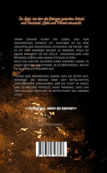 DU SCHLIEßT DEINE AUGEN UND WIRST UMMANTELT VON EWIGER DUNKELHEIT- DOCH WAS IST; WENN DU EIGENTLICH DAS REINE BÖSE IN DIR TRÄGST?Sarah Denver war ein ganz normales High-School Mädchen, welches wie jede andere ab und zu von Albträumen heimgesucht wird. Doch ihre Albträume waren anders als die der anderen Mädchen. Gefangen in einer Abwärtsspirale welche sie in den Abgrund von Mord und Leidenschaft zieht, erstickt sie förmlich. Was wäre, wenn ihre Albträume eigentlich keine Albträume sind? - Und sie stattdessen durch die Straßen von Manhattan Schlafwandelt und niemand weiß, dass sie diese Morde begeht. Zwischen Schuld und Angst stehen zwei Männer an ihrer Seite: Alex, ihre große Liebe, ihr vermeintlich sicherer Hafen und Collin, der geheimnisvolle Fremde, dessen Nähe sie auf unerklärliche Weise in den Abgrund zieht. Beide sind gefährlich für sie, - der eine, weil sie ihn liebt. Der andere, weil er ihre dunkelste Seite entlarven möchte. Während die Polizei immer näher rückt, nagt etwas an ihrem Verstand. Denn, Manchmal sind Träume, nicht nur träume.