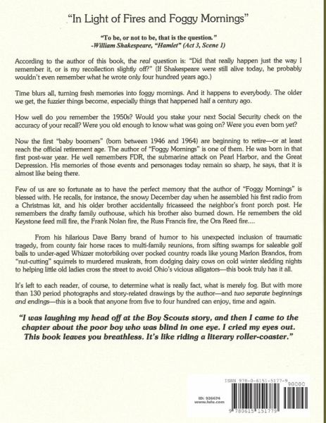This very readable book will get you all fired up about small-town life in the 1950s! Flaunting a Dave Barry brand of humor, dozens of period photos, 50 unique drawings, 31 stand-alone stories, and often a literary level of writing, it rides the reader on a metaphorical Whizzer motorbike journey through life, from days of innocence through forsaken virtue. Along the way, village fires are both personal tragedies and popular roadside attractions. Actual events and historical personages mist over like foggy mornings. How much of each account is fact, how much is fiction? The author asks the reader to decide--and offers help with two different beginnings and endings! Everything in this book is, of course, absolutely, positively true. Sort of.