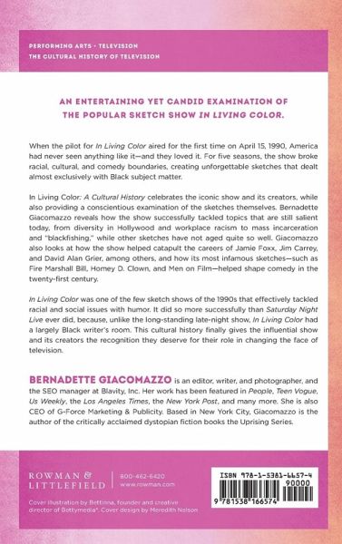 An entertaining yet candid examination of the popular sketch show In Living Color. When the pilot for In Living Color aired for the first time on April 15, 1990, America had never seen anything like it. And they loved it. Over five seasons, the show broke racial, cultural, and comedy boundaries, creating unforgettable sketches that dealt almost exclusively with Black subject matter. In Living Color: A Cultural History celebrates the iconic show and its creators, while also providing a conscientious examination of the sketches themselves. Bernadette Giacomazzo reveals how the show successfully tackled topics that are still salient today, from diversity in Hollywood and workplace racism to mass incarceration and "blackfishing," while other sketches have not aged quite so well. Giacomazzo also looks at how the show helped break the careers of Jamie Foxx, Jim Carrey, and David Alan Grier, amongst others, and how its most infamous sketches-such as Fire Marshall Bill, Homey the Clown, East Hollywood Squares, and Men on Film-helped shape comedy in the twenty-first century. In Living Color was one of the few sketch shows of the 1990s that effectively tackled racial and social issues with humor. It did so more successfully than Saturday Night Live ever did, because, unlike the long-standing late-night show, In Living Color had a largely Black writer's room. This cultural history finally gives the influential show and its creators the recognition they deserve for their role in changing the face of television.