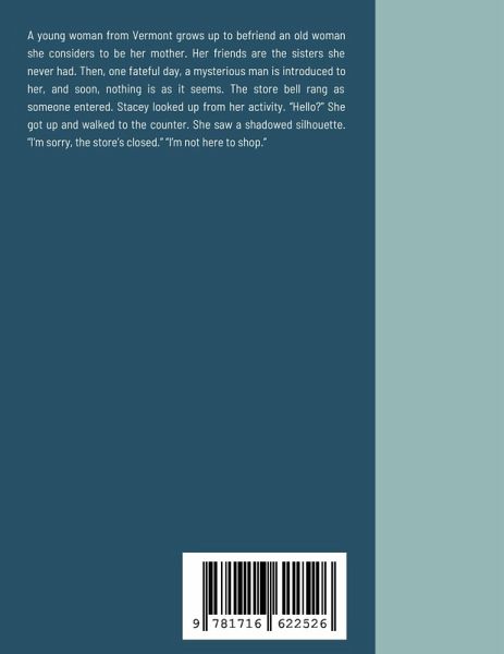 A young woman from Vermont grows up to befriend an old woman she considers to be her mother. Her friends are the sisters she never had. A mysterious man enters her life, and soon, nothing is as they seem. "The store bell rang as someone entered. Stacey looked up from her activity. "Hello?" She got up and walked to the counter. She saw a shadowed silhouette. "I'm sorry, the store's closed." "I'm not here to shop."