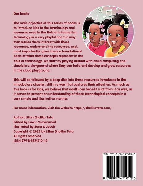 This book (In mummy's cloud; An Introduction to cloud computing) is the first in its series of other technology books for kids to come (see list of future releases below). It takes you through a playground containing resources used in cloud computing and gives you a basic introduction to those services in a fun and playful manner. Familiarize yourself with these terms as the next parts of this series will dive deep into the main components of the resources in the cloud. In mommy's cloud is a fun-to-read book for the whole family as everyone gets to learn a new concept about cloud computing. This book was inspired by true life events with my daughters Haneefa and Faizah.
