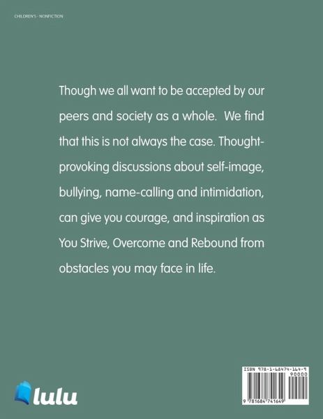 Though we all want to be accepted by our peers and society as a whole. We find that this is not always the case. Thought-provoking discussions about self-image, bullying, name-calling and intimidation, can give you courage, and inspiration as You Strive, Overcome and Rebound from obstacles you may face in life.