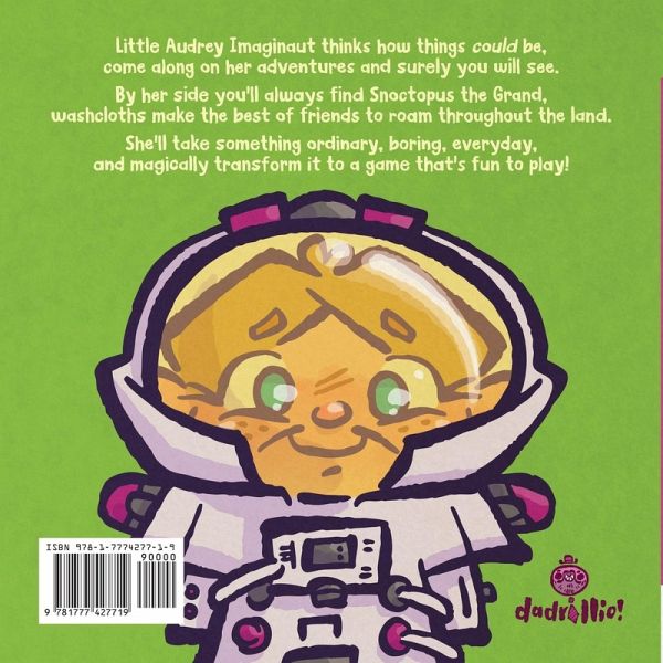 Little Audrey begins her day by hopping in her backyard pool for some refreshing fun. Along with her best friend Snoctopus, she finds herself on whimsical adventures sailing across the world, blasting into outer space, diving deep under the ocean and even breaking for tea on an Arctic ice flow. Join our little imaginaut by unleashing your creativity, engaging your friendships, and exploring your imagination as you head off on an exciting picture book from Dadrillio! ---- Little Audrey Imaginaut thinks how things could be, come along on her adventures and surely you will see. By her side you'll always find Snoctopus the Grand, washcloths make the best of friends to roam throughout the land. She'll take something ordinary, boring, everyday, and magically transform it to a game that's fun to play! ---- "In the summer I like to play in the pool in my backyard. Having fun adventures isn't very hard." -- Little Audrey Imaginaut!!