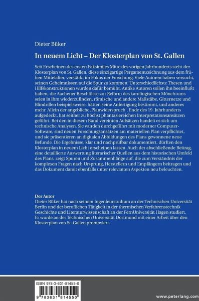 Seit Erscheinen des ersten Faksimiles Mitte des vorigen Jahrhunderts steht der Klosterplan von St. Gallen, diese einzigartige Pergamentzeichnung aus dem frühen Mittelalter, verstärkt im Fokus der Forschung. Viele Autoren haben versucht, seinen Geheimnissen auf die Spur zu kommen. Unterschiedlichste Thesen und Hilfskonstruktionen wurden dafür bemüht. Antike Autoren sollen ihn beeinflußt haben, die Aachener Beschlüsse zur Reform des karolingischen Mönchtums seien in ihm wiederzufinden, römische und andere Maßstäbe, Gitternetze und Blindrillen beispielsweise, hätten seine Anfertigung bestimmt, und anderes mehr. Allein der angebliche 'Planwiderspruch', Ende des 19. Jahrhunderts aufgedeckt, hat seither zu höchst phantasiereichen Interpretationsansätzen geführt. Bei den in diesem Band vereinten Aufsätzen handelt es sich um technische Analysen. Sie wurden durchgeführt mit moderner Computer-Software, sind neuen Forschungsansätzen am materiellen Plan verpflichtet, und sie präsentierenan digitalen Abbildungen des Plans gewonnene neue Befunde. Die Ergebnisse, klar und nachprüfbar dokumentiert, dürften den Klosterplan in neuem Licht erscheinen lassen. Auch der abschließende Beitrag, eine detaillierte Auswertung literarischer Quellen aus dem historischen Umfeld des Plans, zeigt Spuren und Zusammenhänge auf, die zum Verständnis der komplexen Fragen nach Ursprung, Herstellern und Empfängern beitragen und das Dokument damit ebenfalls unter relevanten Aspekten neu beleuchten.