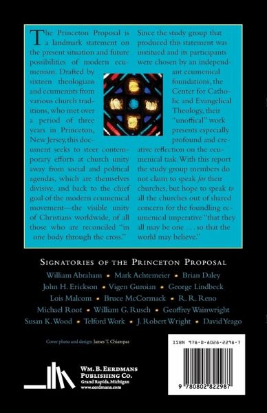 The Princeton Proposal is a landmark statement on the present situation and future possibilities of modern ecumenism. Drafted by sixteen theologians and ecumenists from various church traditions, who met over a period of three years in Princeton, New Jersey, this document seeks to steer contemporary efforts at church unity away from social and political agendas, which are themselves divisive, and back to the chief goal of the modern ecumenical movement — the visible unity of Christians worldwide, of all those who are reconciled "in one body through the cross." Since the study group that produced this statement was instituted and its participants were chosen by an independent ecumenical foundation, the Center for Catholic and Evangelical Theology, their "unofficial" work presents especially profound and creative reflection on the ecumenical task. With this report the study group members do not claim to speak for their churches, but hope to speak to all the churches out of shared concern for the founding ecumenical imperative "that they all may be one . . . so that the world may believe." Signatories of the Princeton Proposal: William Abraham * Mark Achtemeier * Brian Daley * John H. Erickson * Vigen Guroian * George Lindbeck * Lois Malcolm * Bruce McCormack * R. R. Reno * Michael Root * William G. Rusch * Geoffrey Wainwright * Susan K. Wood * Telford Work * J. Robert Wright * David Yeago