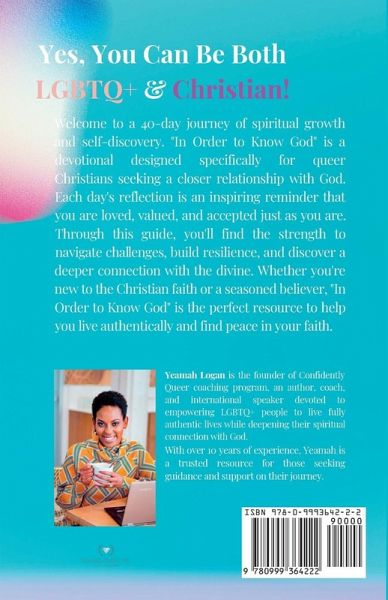 In Order to Know God" is the devotional for you if you're a queer Christian looking to develop a stronger relationship with God. This 40-day journey is intended to support your spiritual development and help you embrace your true self in a world that might not always accept you. With daily reflections, you'll learn how to navigate the area where sexuality and religion collide and find courage and resiliency along the way. You will discover God's love for you through this devotional and develop a stronger relationship with Him. Anyone who wants to live authentically and find peace in their faith should read this book.
