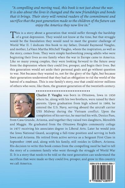 This is a story about a generation that would suffer through the hardship of a great depression. They would not know at the time, but that struggle would be the foundation they would need to meet the greater challenge of World War II. I dedicate this book to my father, Donald Raymond Vaughn, and mother, LaVaun Martha Mitchell Vaughn, whom the inspiration, as well as the story, comes from. They were simple hardworking young adults who were beginning their lives as one family when the war in Europe came to America. Like so many young couples, they were looking forward to the future away from the…mehr